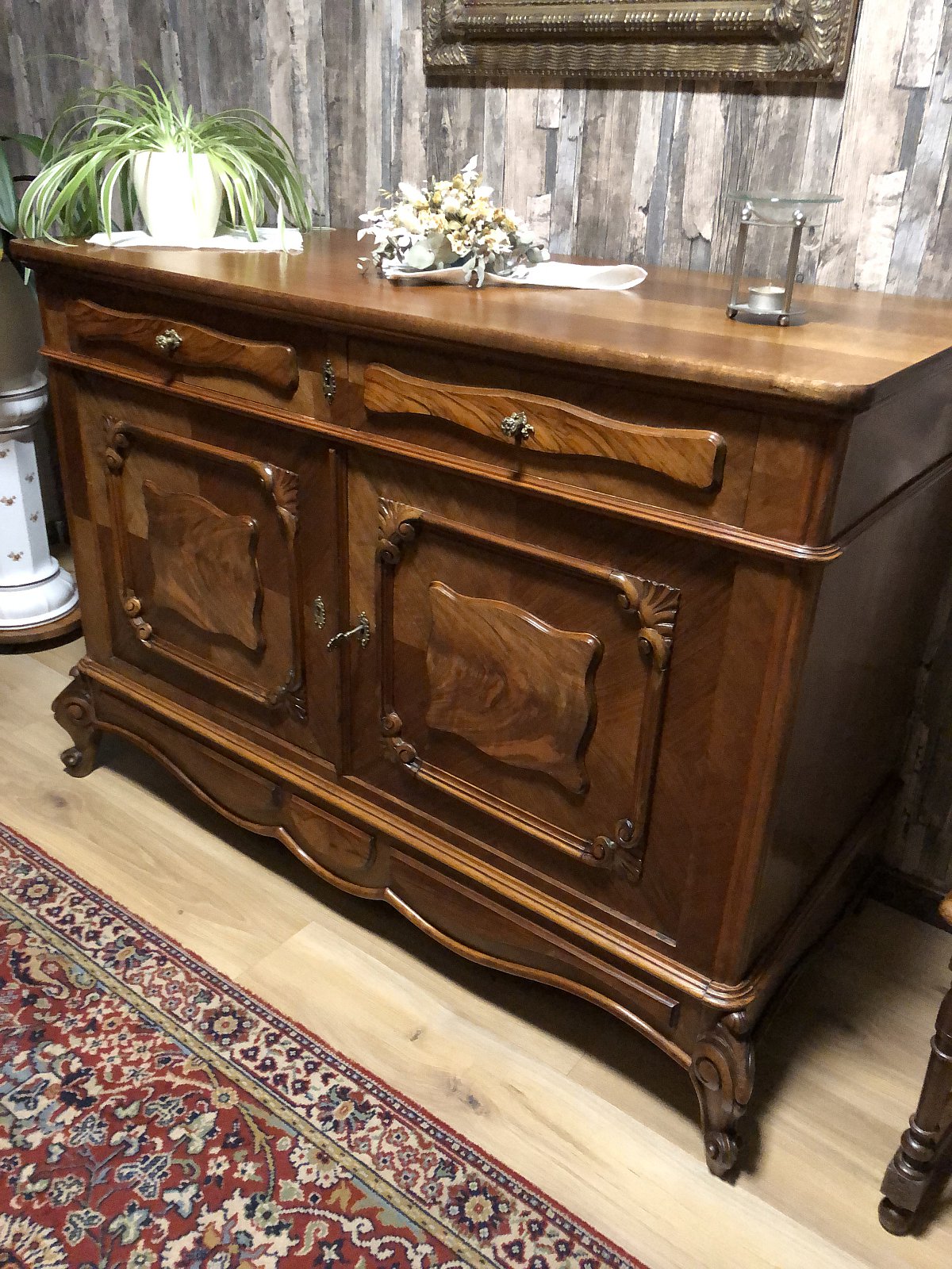 Große antike Kommode, Nussbaum,Louis, 2 Schubladen und 2 Türen, innen3 große Schubladen, Platte versiegelt,