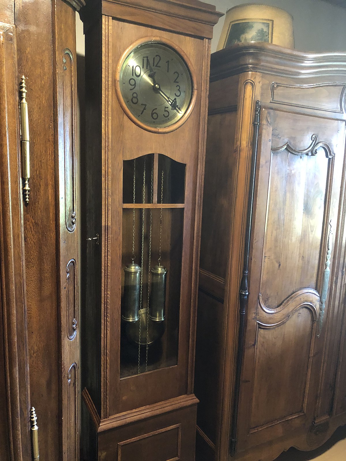 Antike Standuhr mit 2 Gewichten, uhrwerk voll funktionsfähig, mit Schloss.