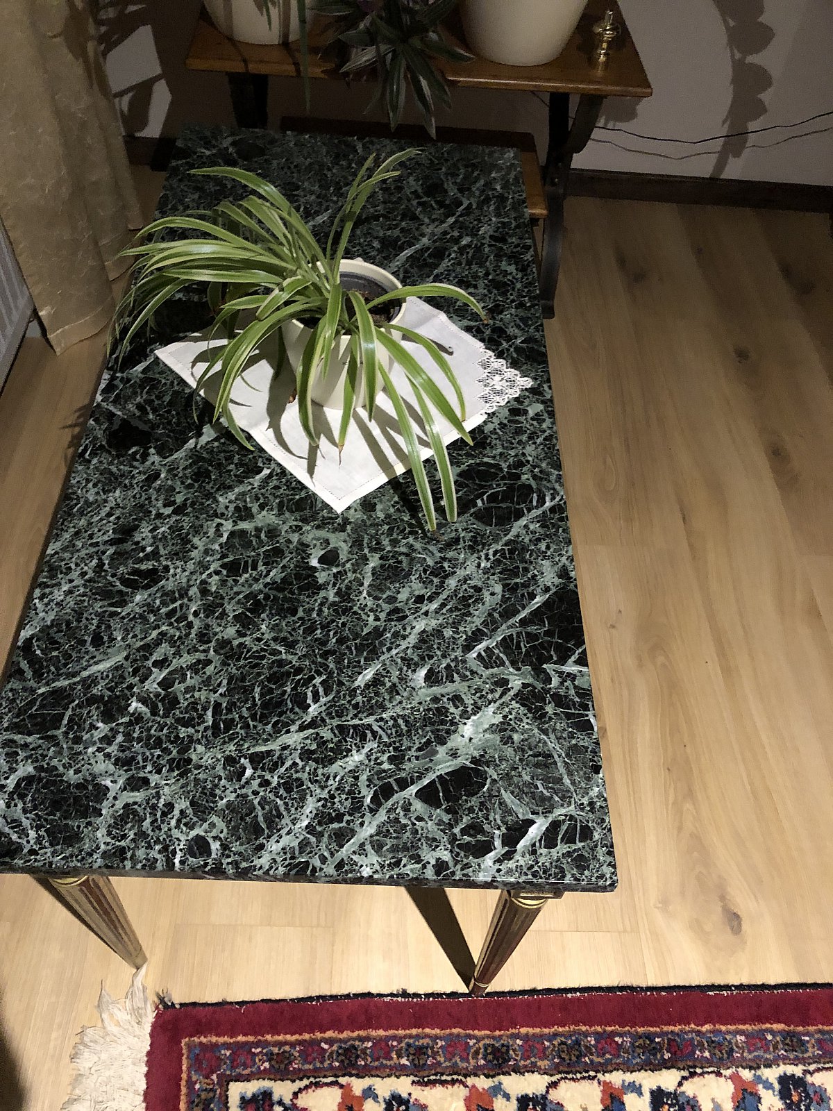 Antiker Couchtisch, Beistelltisch, Marmorplatte, Messingbeine