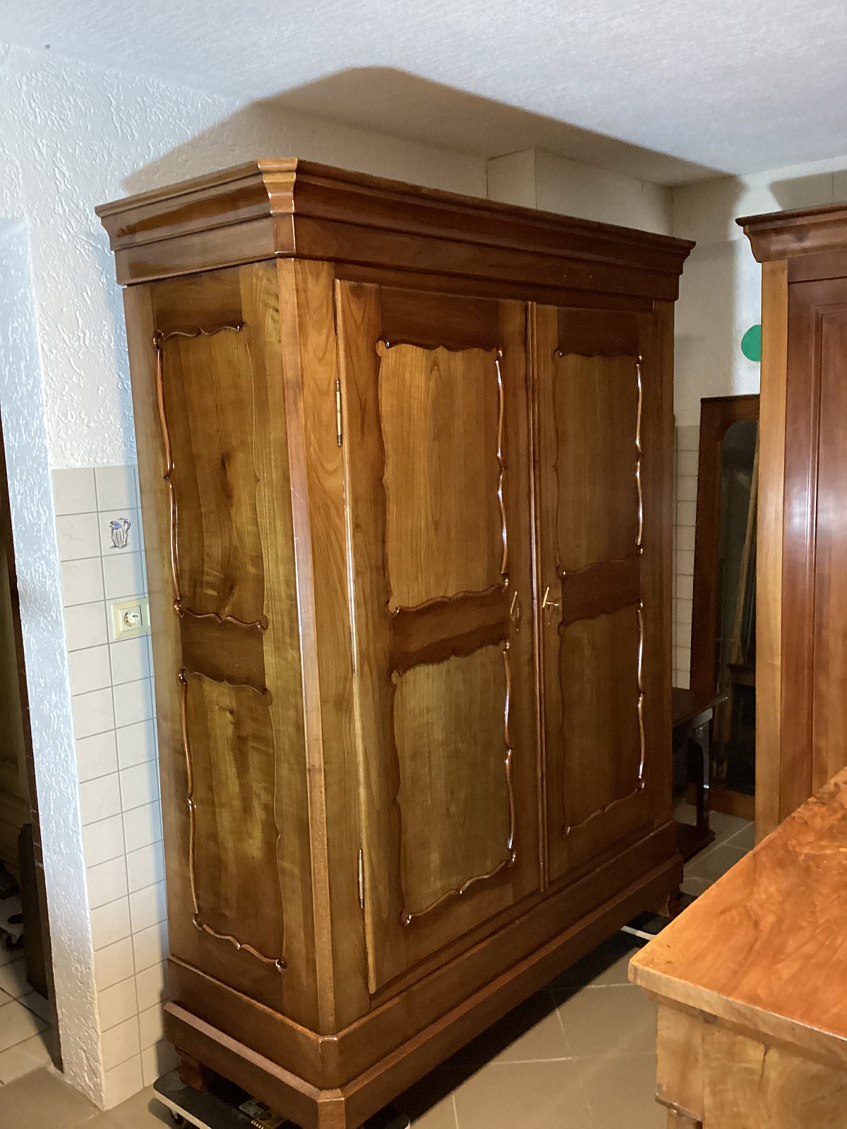 Antiker Kleiderschrank, Kirschbaum massiv, Spätbiedermeier