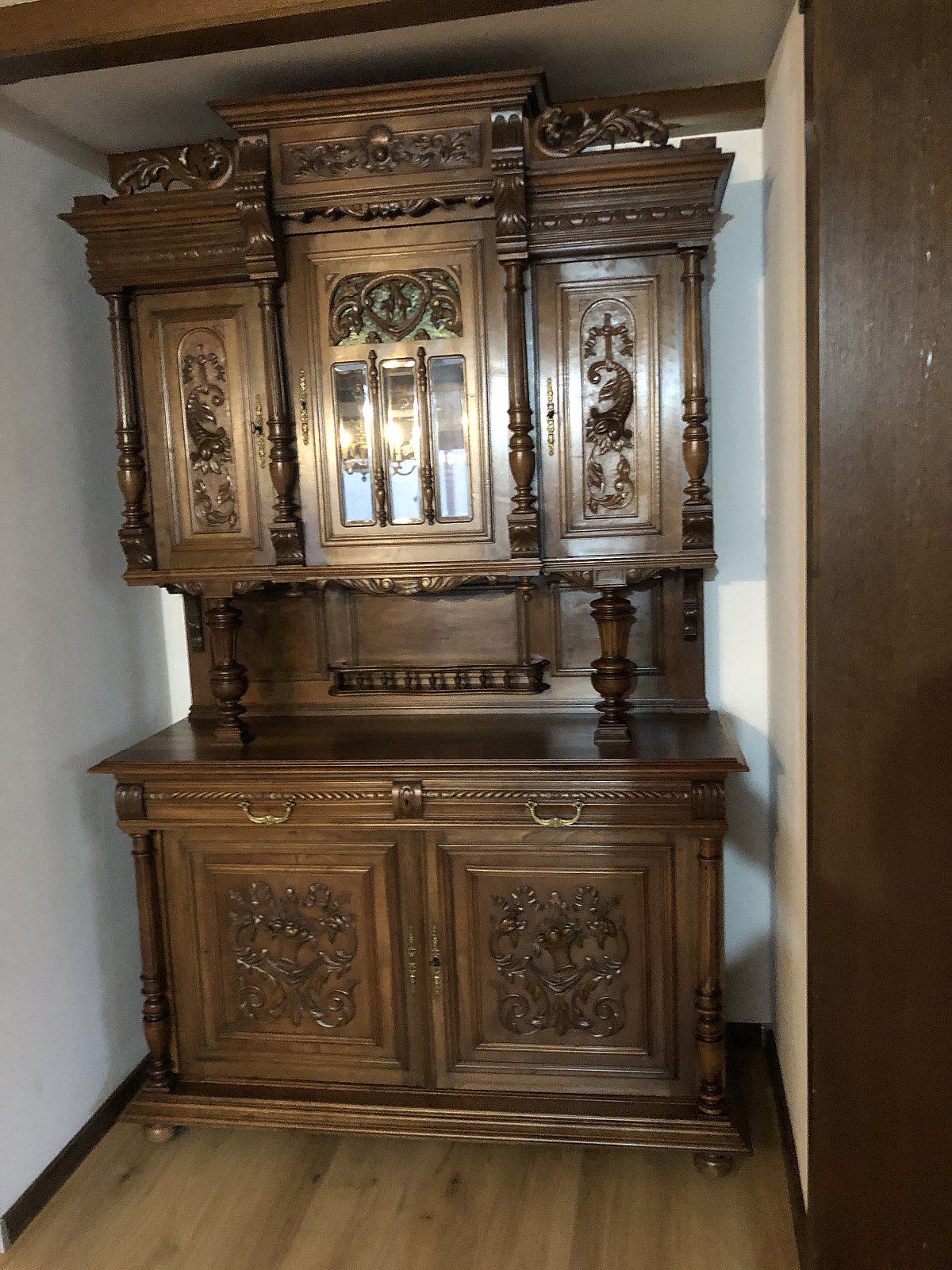 Antikes Buffet, Nussbaum massiv, Gründerzeit
