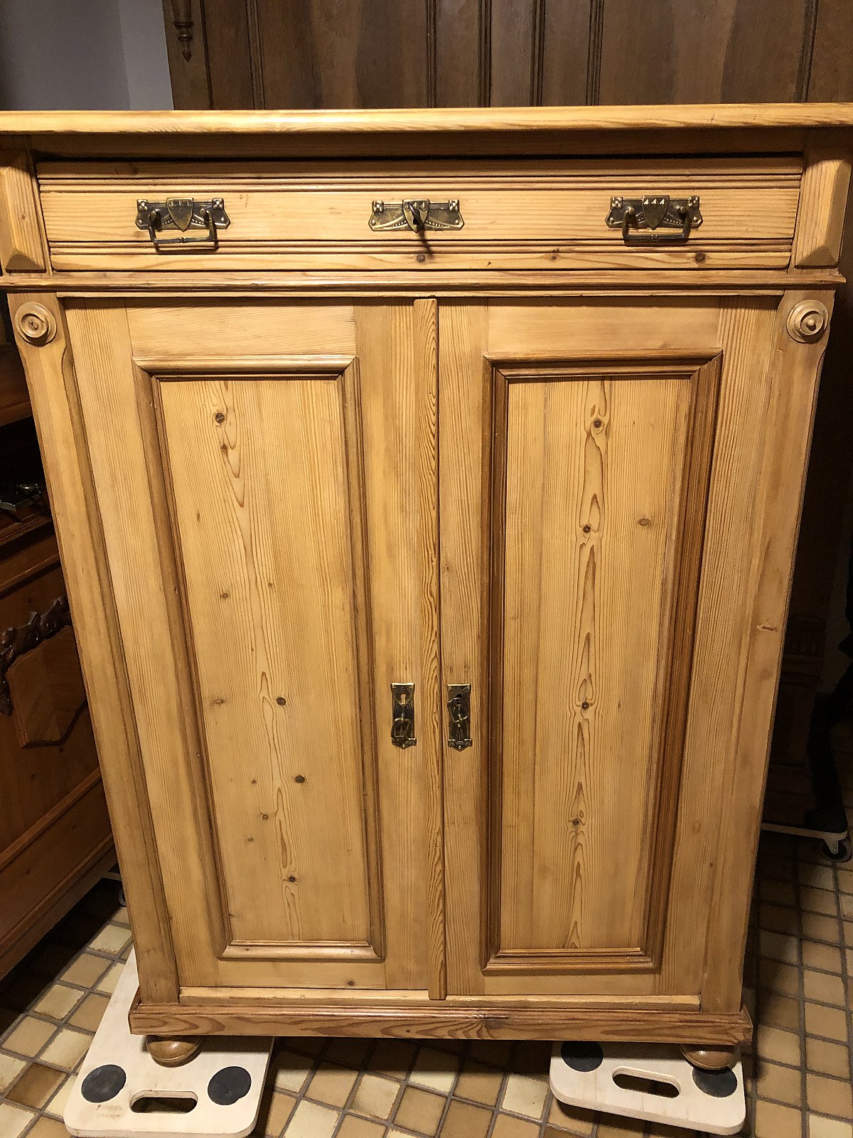 Antikes Vertiko, Weichholz, Gründerzeit, 1 Schublade,2 Böden, gewachst.